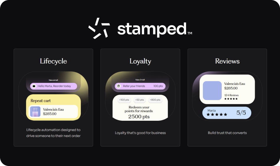 Stamped helps Shopify brands turn one-time buyers into repeat customers through connected lifecycle, loyalty, and reviews experiences.